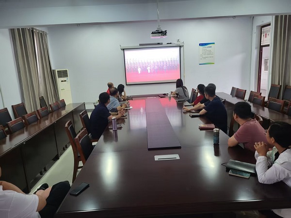 在2号楼204会议室里,全体人员共同沉浸在这场庄严而震撼的视听盛宴中。在观看过程中,大家认真聆听了习近平总书记的重要讲话,仔细观看了阅兵仪式等环节。当一个个受阅方队整齐通过天安门广场,一架架战机呼啸飞过天空时,教职工们深受鼓舞,倍感振奋,现场不时响起热烈的掌声。