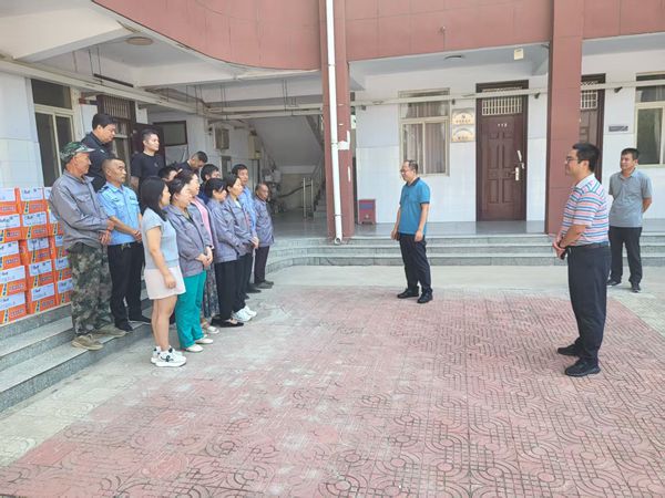 王斌书记、付金华主任向无惧高温、兢兢业业、坚守一线的暑期教职工,致以崇高的敬意和衷心的感谢,详细询问大家的工作和生活情况,叮嘱大家劳逸结合,增强防暑和安全意识;称赞大家爱岗敬业、甘于奉献的精神,希望大家立足岗位,做好本职工作,有序完成暑假期间各项服务保障,为师生营造安全舒适的学习、工作和生活环境,确保平安度夏。