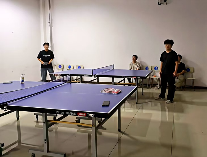 新球场位于人流密集的食堂一楼,地理位置优越,场地内部宽敞明亮,配备了标准乒乓球台及完善的隔离设施,能够满足多组同学同时进行比赛或练习的需求。其优越的环境和设施条件,极大地提升了同学们的运动体验,课余时间,同学们可以在此切磋球技,银球飞舞,这片新场地不仅是一个锻炼身体的好去处,更是一个促进友谊、放松身心的社交空间。