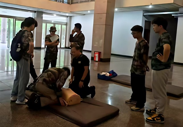 培训现场,医护人员通过理论讲解与实操演示相结合的方式,为在场师生系统讲解了心肺复苏、气道异物梗阻的急救(海姆立克急救法)以及常见创伤的止血包扎技术等核心内容。讲解深入浅出,重点突出,使大家对“黄金救援4分钟”等急救理念有了深刻的认识。